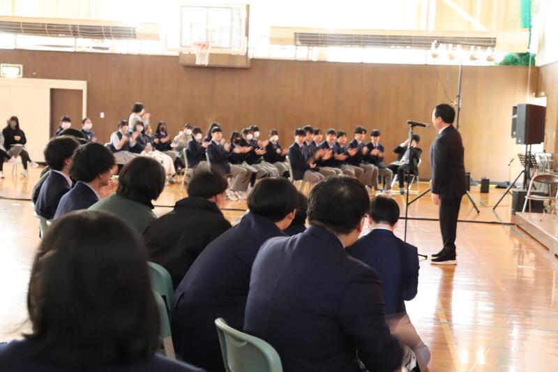 12月13日(土)13:00~15:30に本校体育館にて、津別町と北海道大学公共政策大学院と本校の3者連携で行っている高大連携事業の成果報告会を実施しました。2年生が北大生の助言を受けながら探究してきた成果について、町への政策提言という形で報告をしました。最後には、北大公共政策大学院の今井太志教授から発表内容の講評・助言を受けました。
