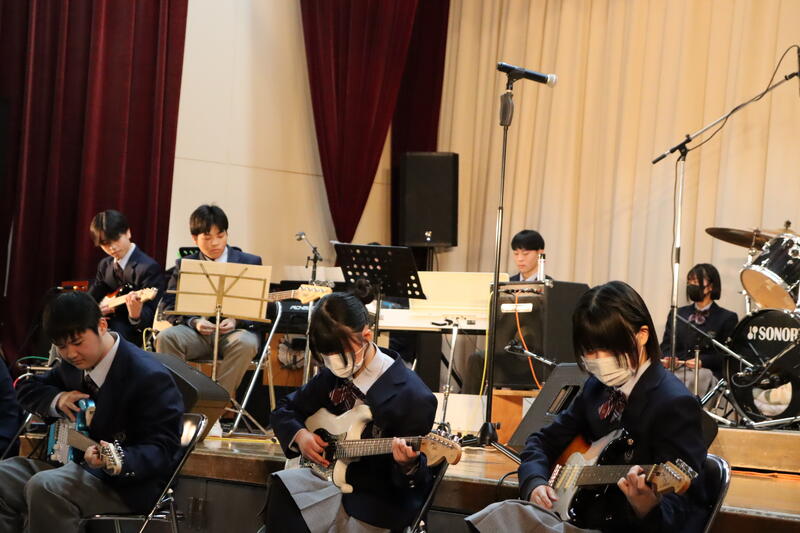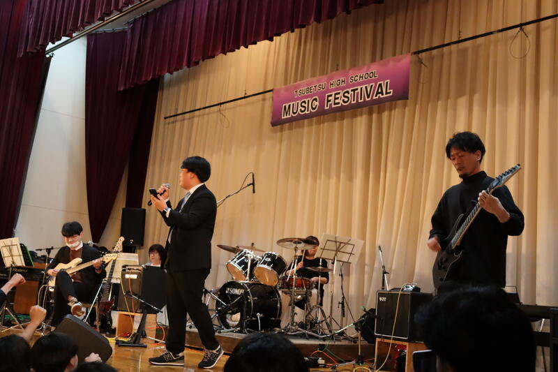 1月29日(木)12:30~15:30まで、本校体育館にて地域の音楽家とのコラボによる「津別高校ミュージックフェス2025」を開催しました。今年度はプロのミュージシャンである門馬由哉氏のアコースティックギターによるライブも行われました。夏の津高祭に引き続き、今回も機材や音響設備準備をOBなど地域の方に協力していただいて、全校生徒と保護者、地域の方とでの楽しい音楽祭となりました。