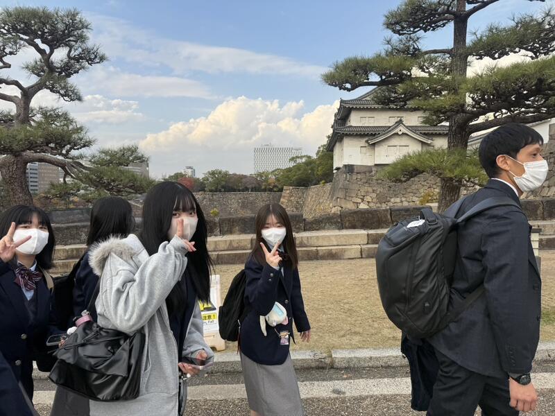 本日(12/2)より、2年生は関西方面への見学旅行に行っています。定刻通りに出発し、羽田空港経由で伊丹空港に到着しました。その後、全員で大阪城への見学を行いました。初日は、天候に恵まれ、オーバーツーリズムの影響も受けずに見学できたとのことです。