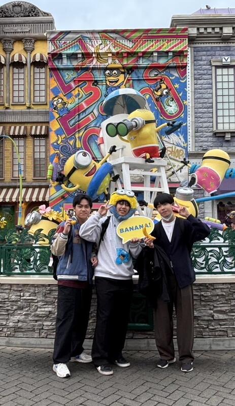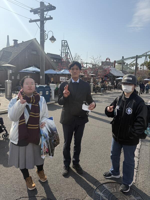 見学旅行2日目(12/3)の様子です。全員でオープン時間からユニバーサルスタジオジャパン(USJ)に行き、その後、それぞれの班に分かれて大阪各地への自主研修に出かけていきました。体調不良者もいなくて、天気も快晴とのことです。