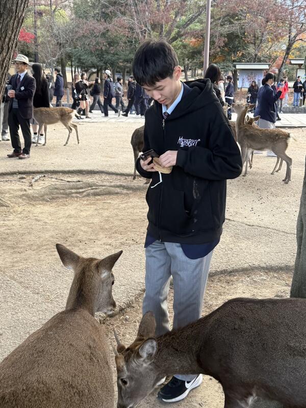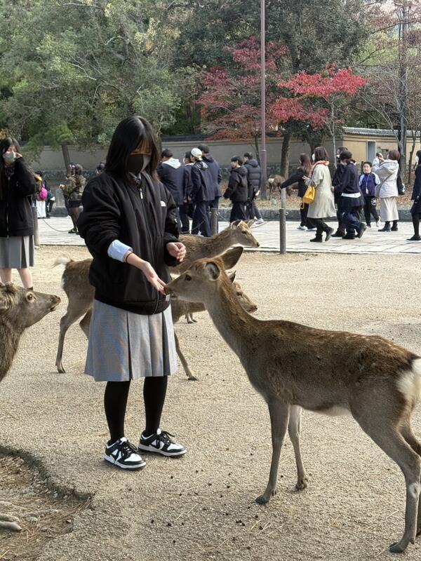 見学旅行最終日(12/5)となりました。今日も天気が良く、生徒たちは元気に過ごしているとのことです。午前中は全員で奈良公園と東大寺に行きました。ここまで全て順調に旅程を終え、これから羽田空港経由で戻ってくる予定となっています。