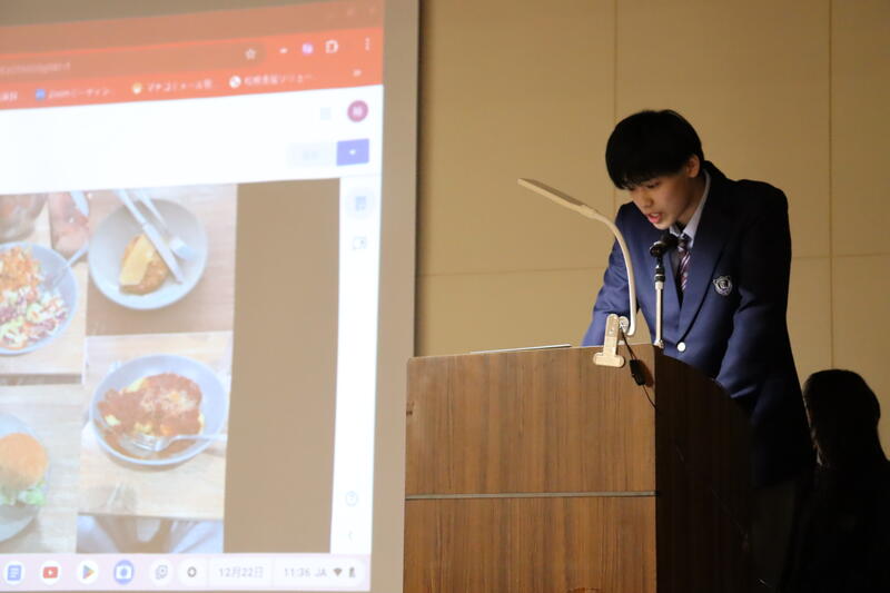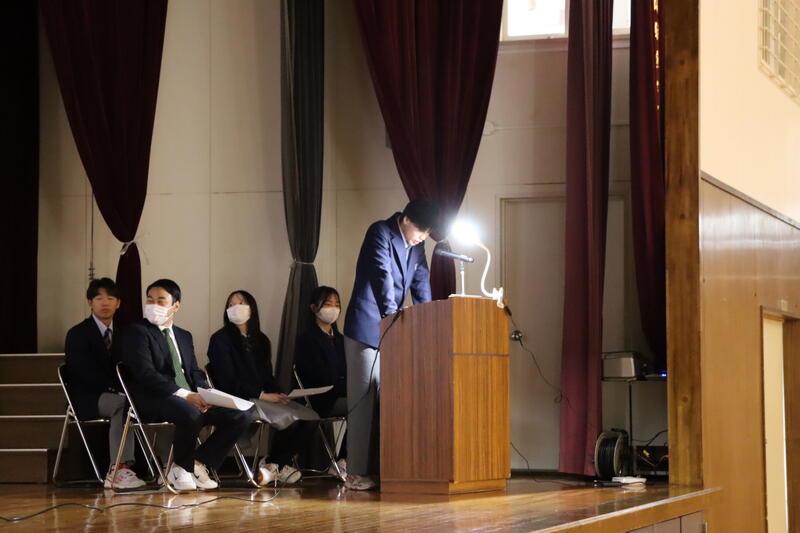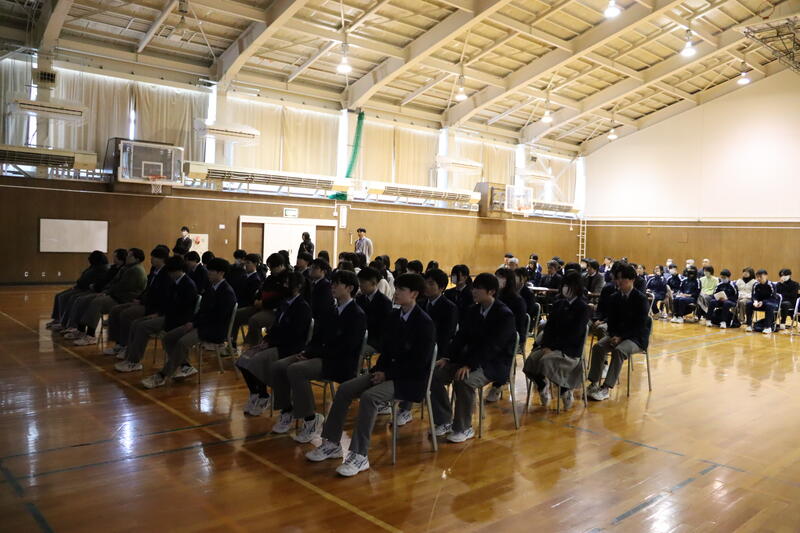 12月13日(土)13:00~15:30に本校体育館にて、津別町と北海道大学公共政策大学院と本校の3者連携で行っている高大連携事業の成果報告会を実施しました。2年生が北大生の助言を受けながら探究してきた成果について、町への政策提言という形で報告をしました。最後には、北大公共政策大学院の今井太志教授から発表内容の講評・助言を受けました。