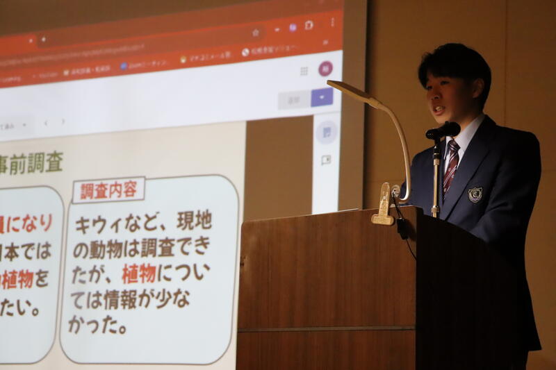 12月22日(月)10:50~11:40に本校体育館にて、津別町の支援のもと実施したニュージーランド研修の報告会を行いました。研修に参加した生徒の各自の研修テーマに対する成果を全校生徒及び保護者、地域住民の前で報告をしました。今年度も海外文化を深めるための中高連携の試みとして、津別中学校の2年生も参加しました。